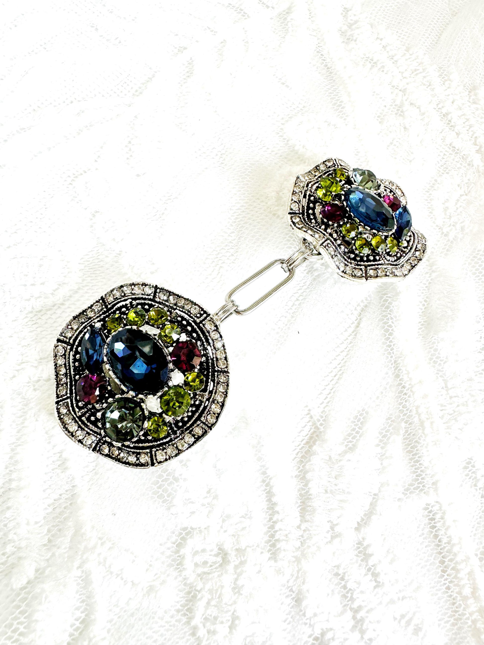 Bejeweled Silver Baroque Cinch Clip | Cardigan and Sweater Clips | Scarf Clasp Brooches for Dress Belt | Unique Handmade USA Gift, KardiKlip