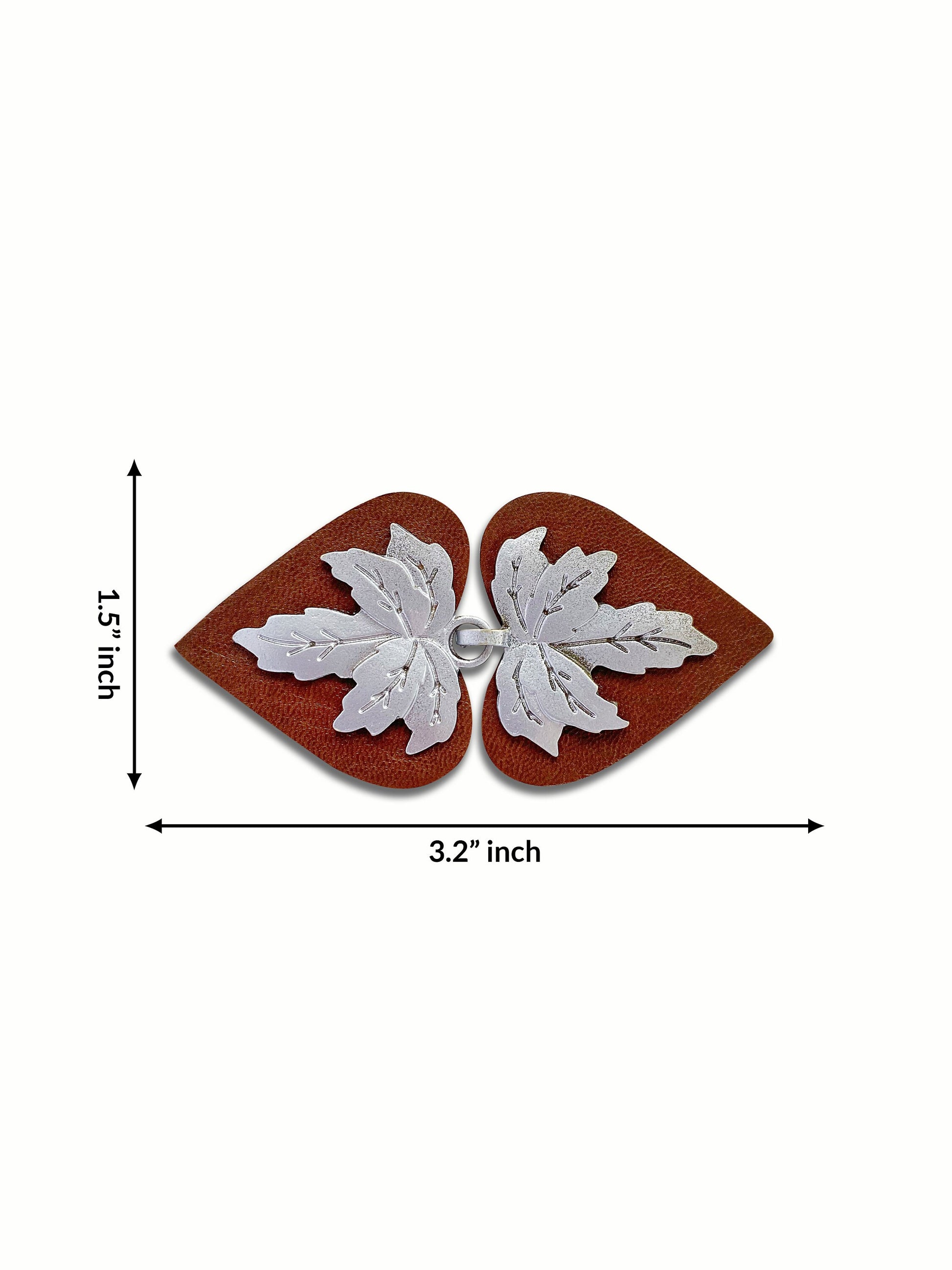 "Halcyon" Silver Leaf on Brown Leather Clothing Clasp