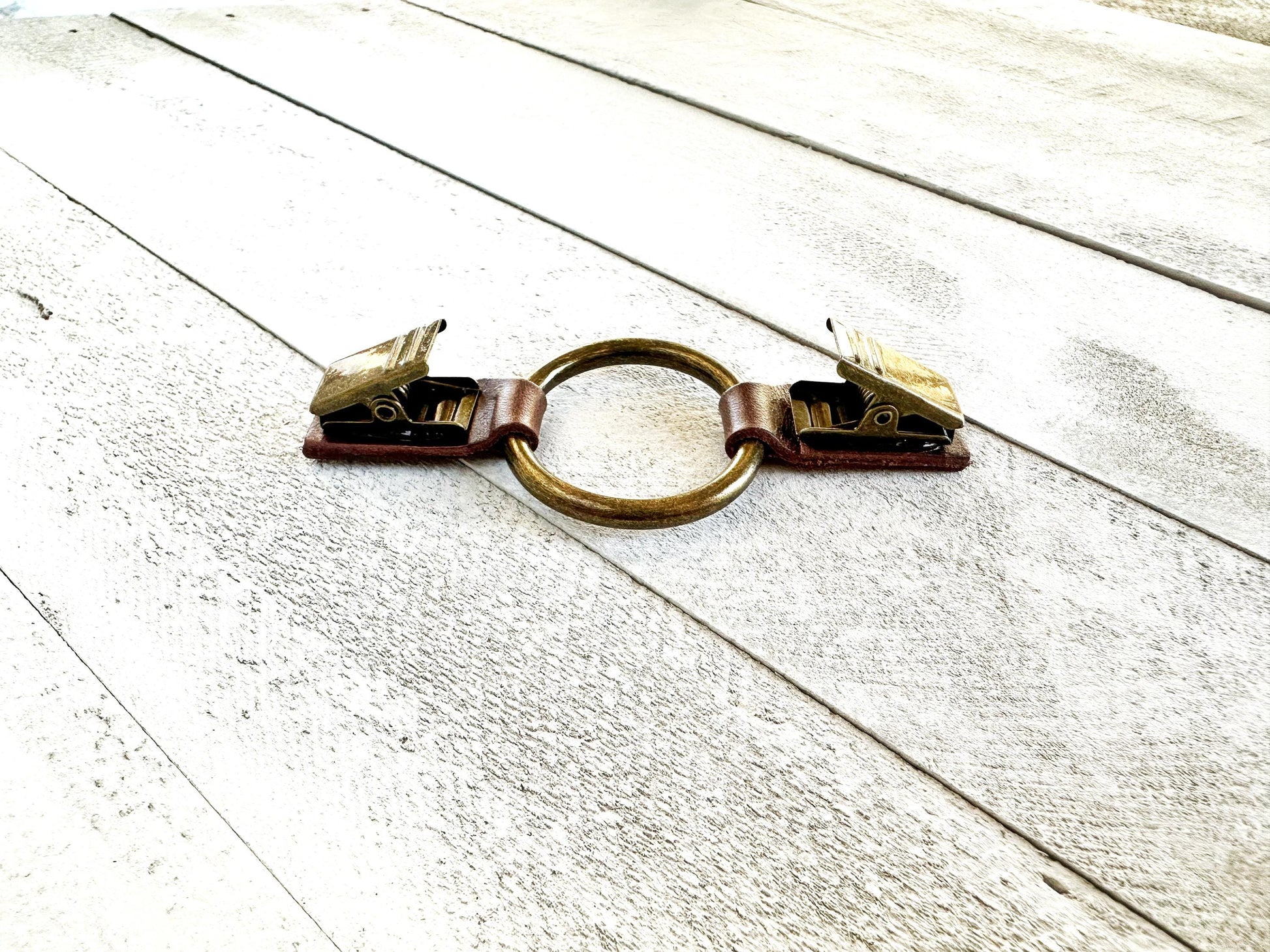 Dress Cinch Clip | Bronze Ring & Brown Leather Sweater Clip | Unique Clothing Clasps Shawl Clip | Steampunk Minimalist Versatile Skinny Belt