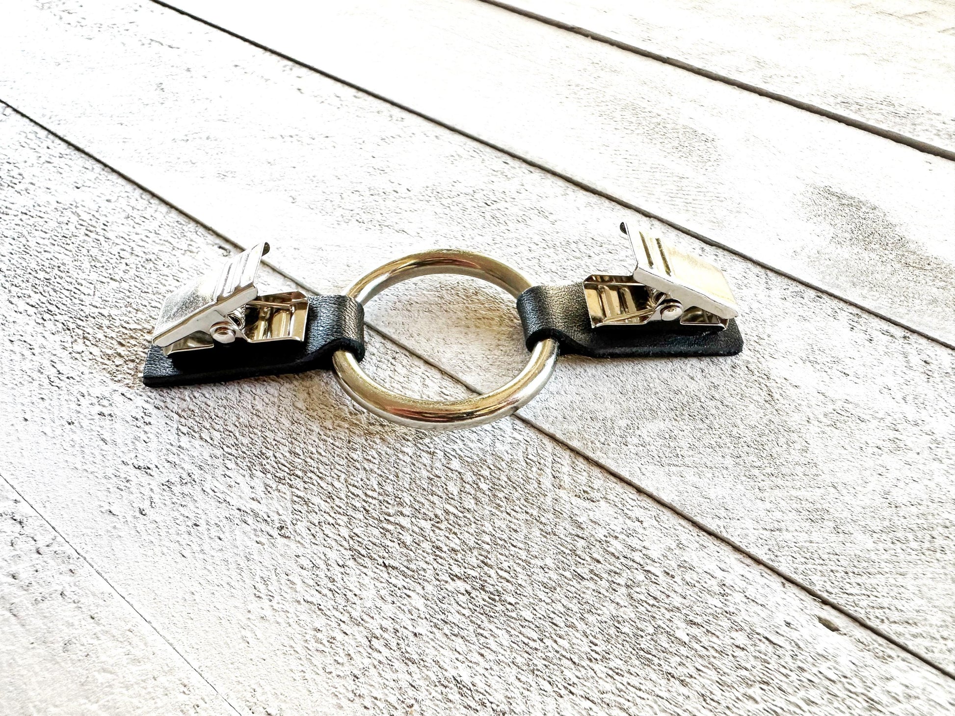 Dress Cinch Clip | Silver Ring & Gray Leather Sweater Clip | Unique Clothing Clasps Shawl Clip | Steampunk Minimalist Versatile Capsule
