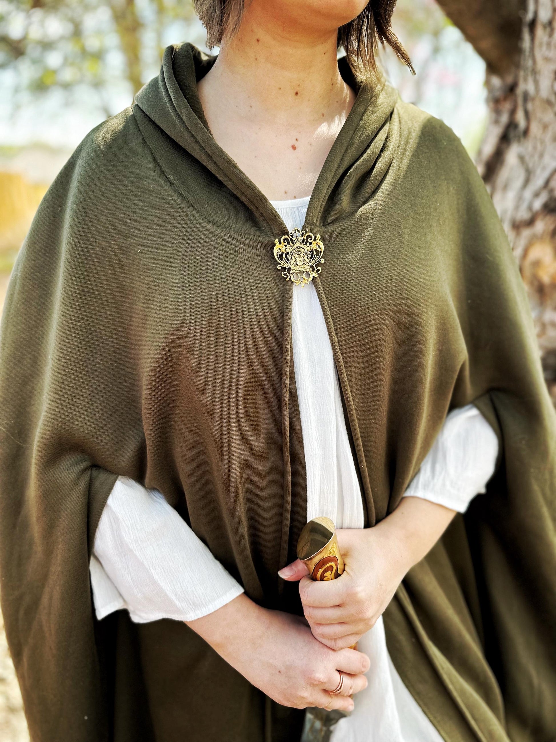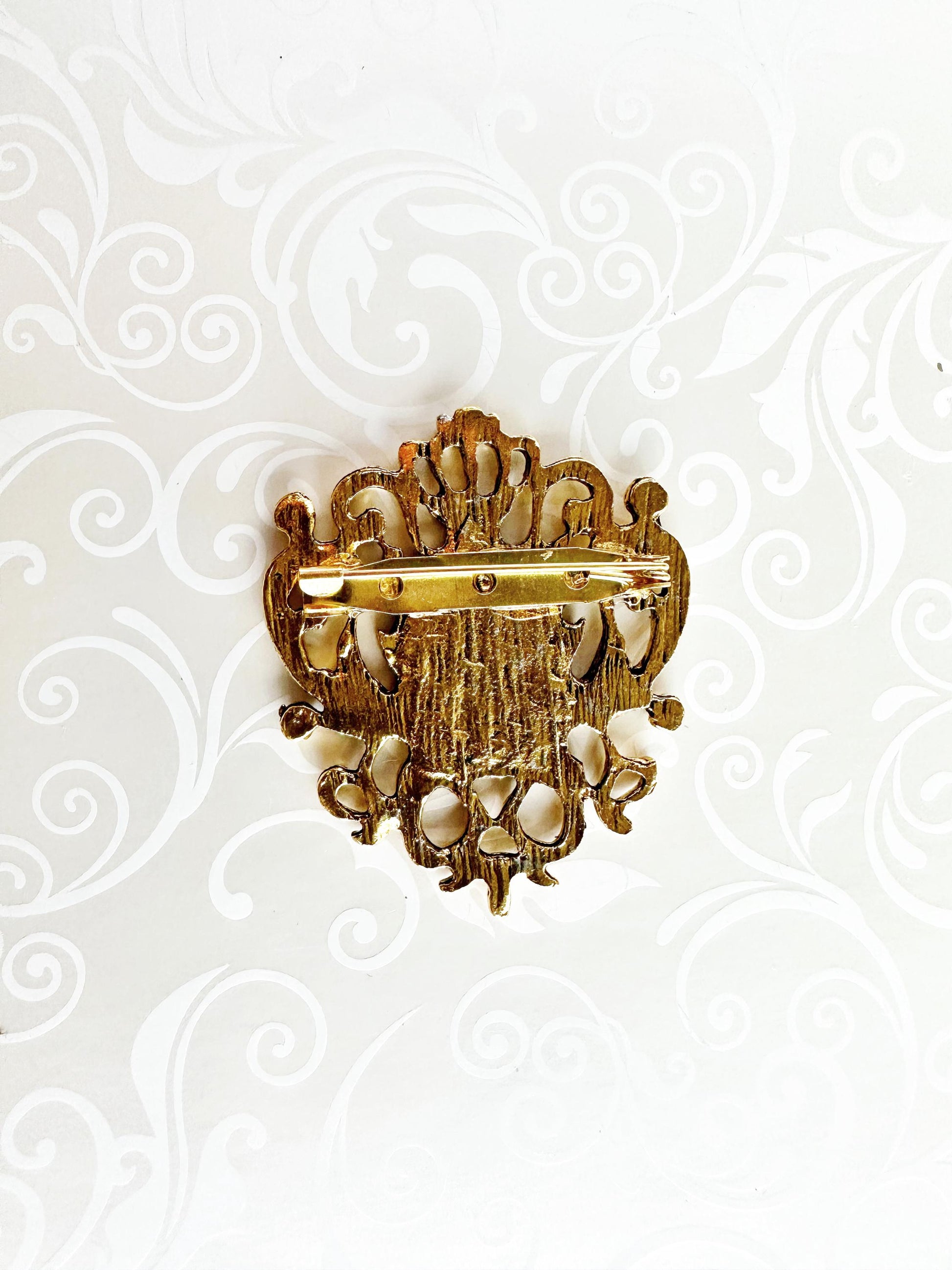 Add a little Medieval Magic to your look with this beautifully ornate and richly detailed gold crest brooch pin!