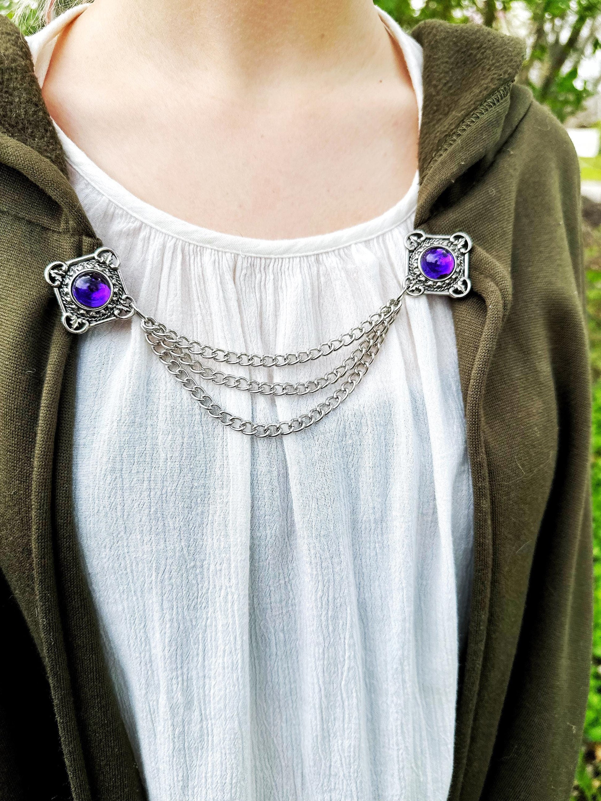 NEW* Heavy Silver & Amethyst Cloak Clasp with Draping Chains | Vintage Repurposed