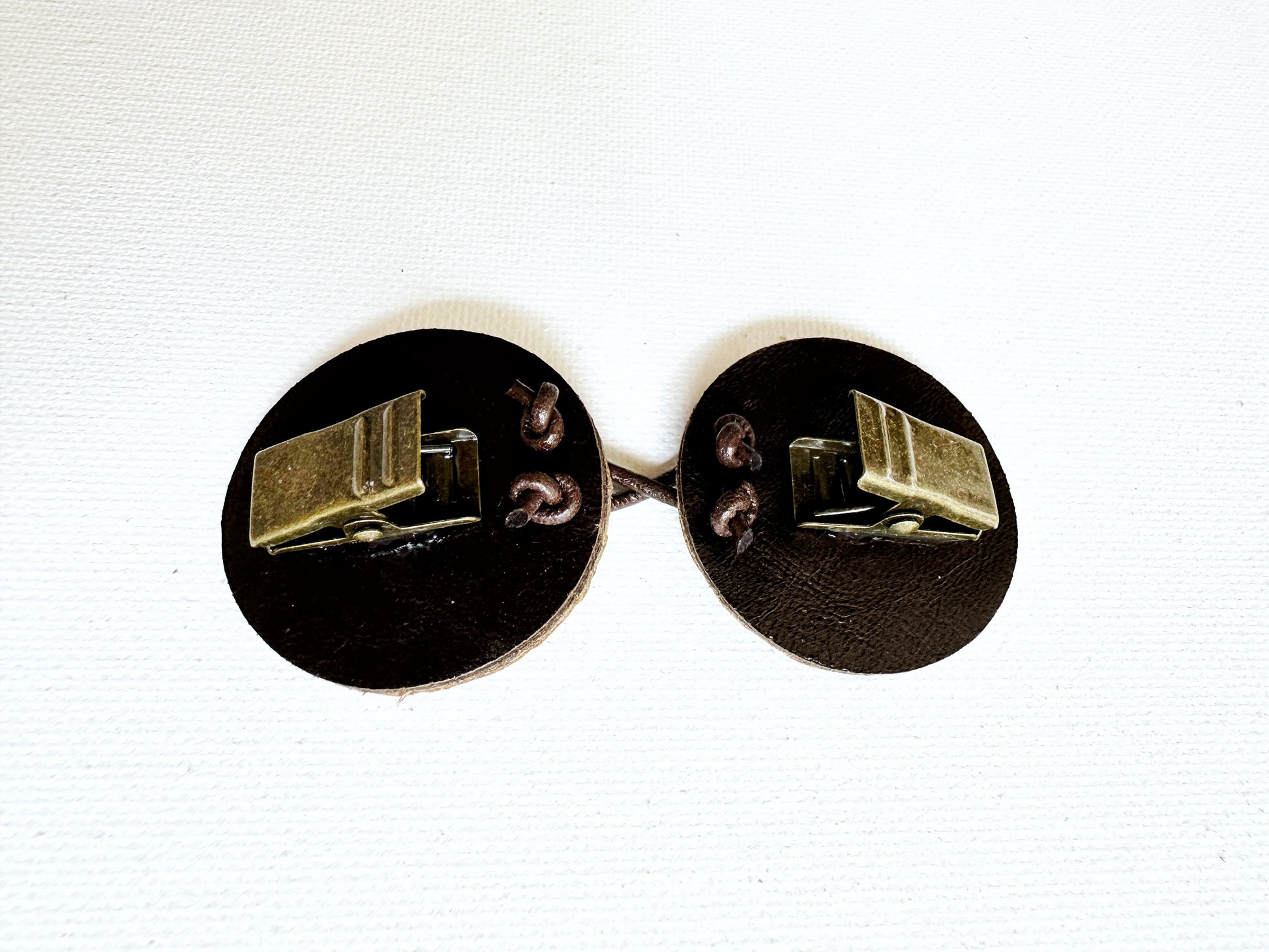 "Impressions" Raised Embossed Brown Leather Clasp Medallions