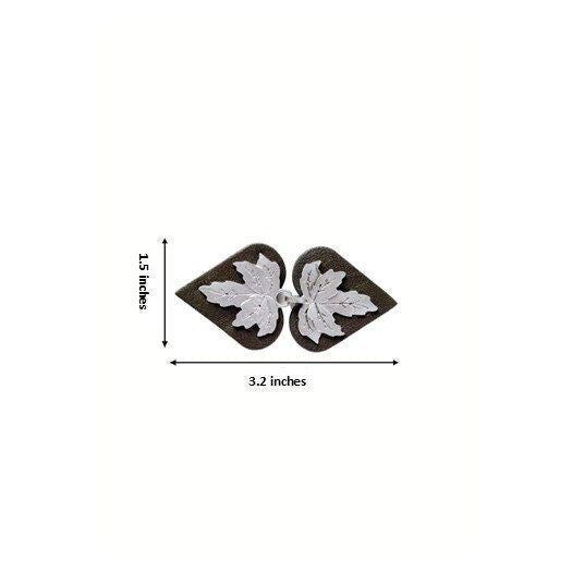 Silver Leaf Cloak Clasp | Sweater Clips | Metal on Genuine Gray Leather Cardigan Closure | Kardiklips | Steampunk Renaissance Cape | K-009