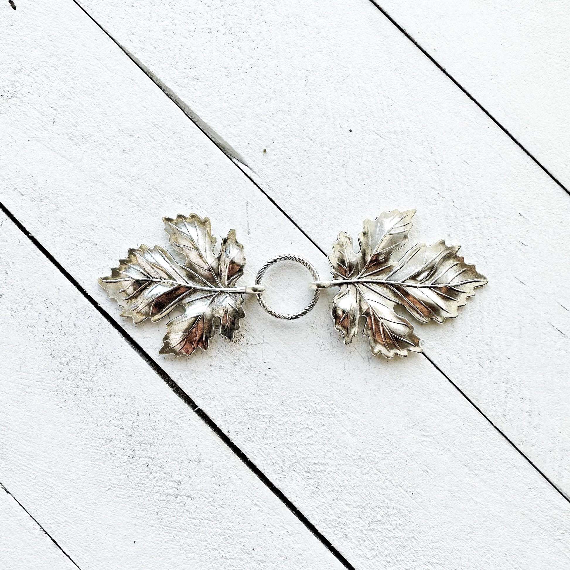 Detailed silver maple leaves, connected by a stainless steel ring.