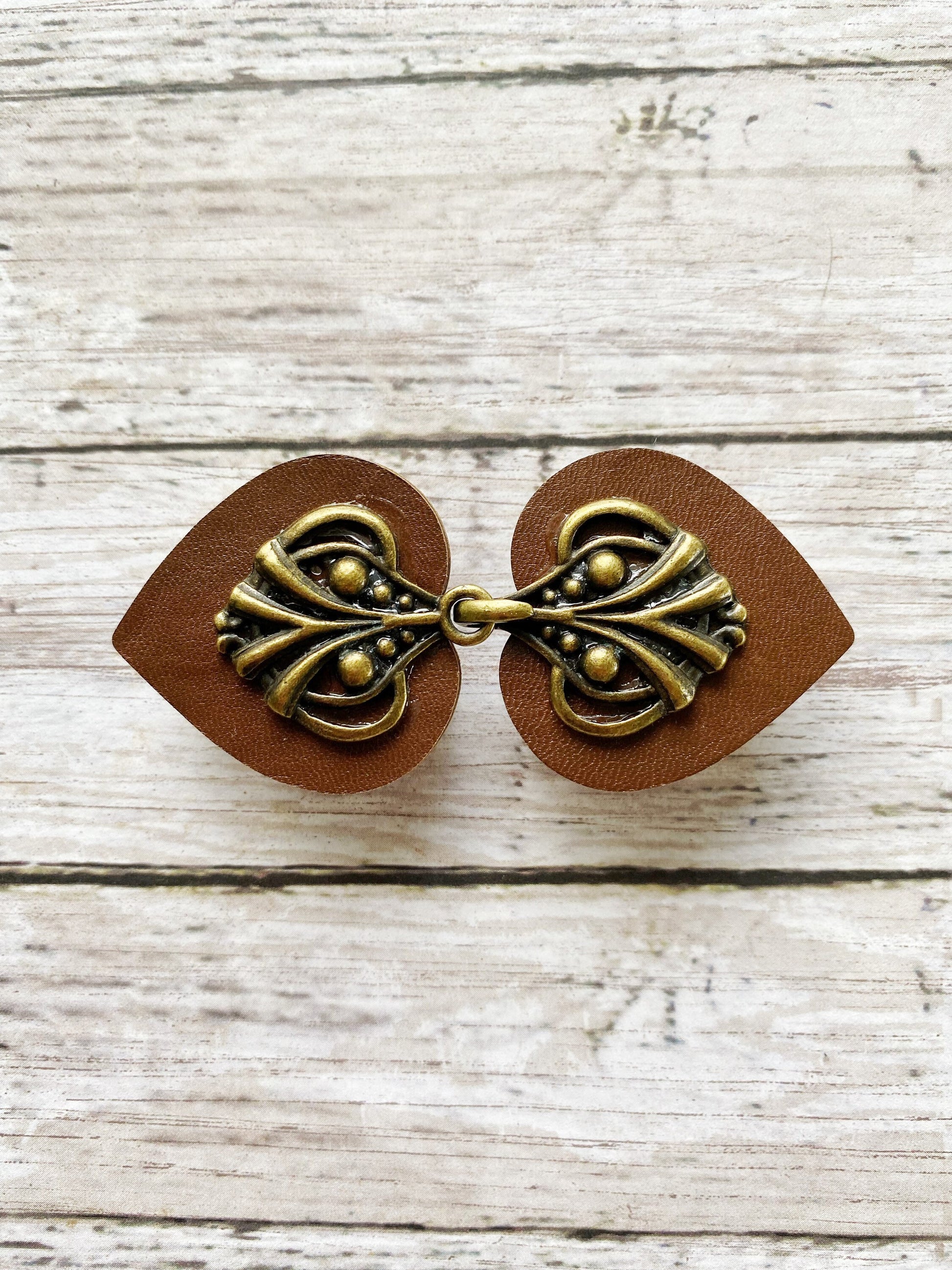 "Myriad" Bronze on Brown Leather Clothing Clip